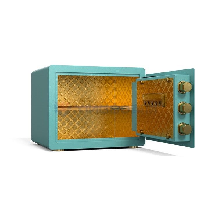 Wszechstronna powierzchnia sejfu jest ozdobiona złotą skórą, aby zabezpieczyć twoje kosztowne rzeczy.