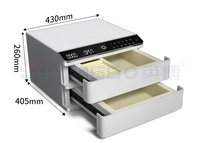Skrzynka zabezpieczona z biżuterią pokrytą skórą ma nowy wygląd, hartowany szklany panel, odporność na zadrapania i wysoką temperaturę, operację wizualną, prostą i wygodną.
